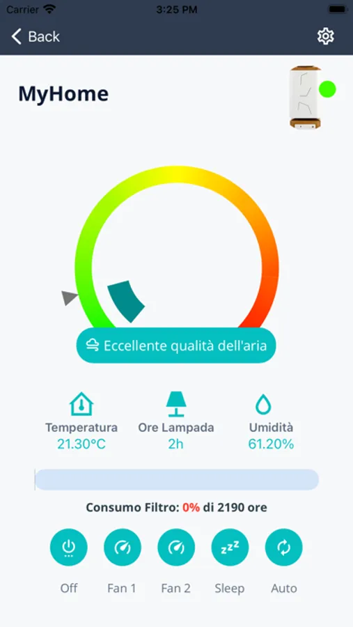 Potrai accendere, spegnere, regolare la ventilazione del dispositivo anche lontano da casa o impostare il funzionamento automatico per trovare sempre l’abitazione perfettamente sanificata.