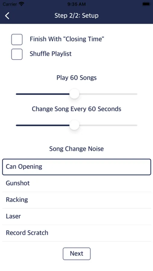 Hear the first minute of every song from any Spotify playlist, punctuated by a "song change" noise. Simply select a playlist from your library to get started - from there, you are just a couple of taps away from perfect motivational music. Get more from your playlists! Requires a Spotify Premium subscription.