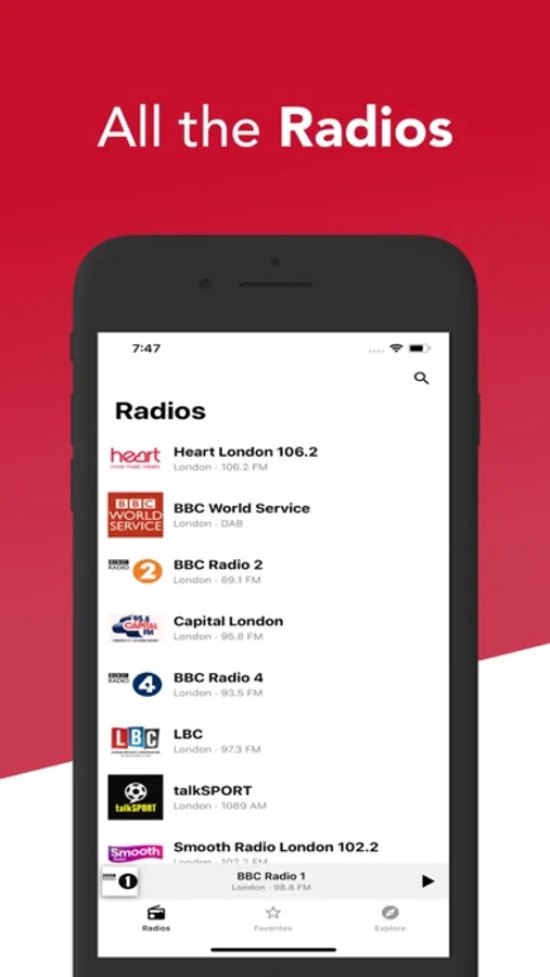 In our app, access all the British radio stations and choose between sports, news, music or other radio stations. You can listen to everything for free, no matter where you are.
