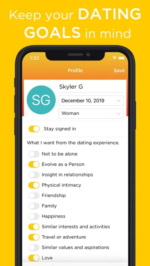You have unique dating goals. Identify what they are and see if your dates are meeting your goals and living up to your expectations. You can add more goals and be more specific in the journaling section.