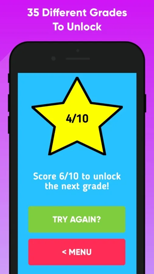 The premise of the app is simple: to unlock the next grade, you must score at least 6/10 in the test. This means that the app is suitable for all ages and levels of knowledge, from children just starting to learn to adults looking to test their expertise.
