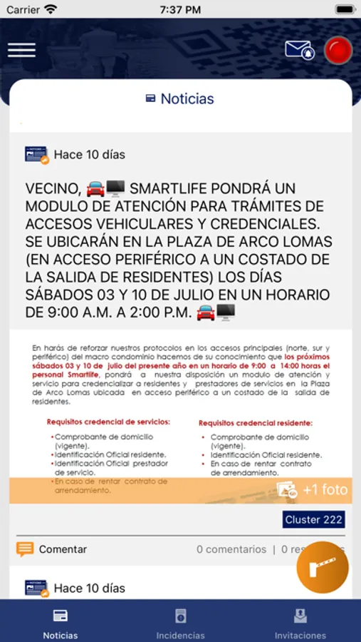 Notificación de incidencias ocurridas al interior de la comunidad; no más grupos de WhatsApp con información indeseables.