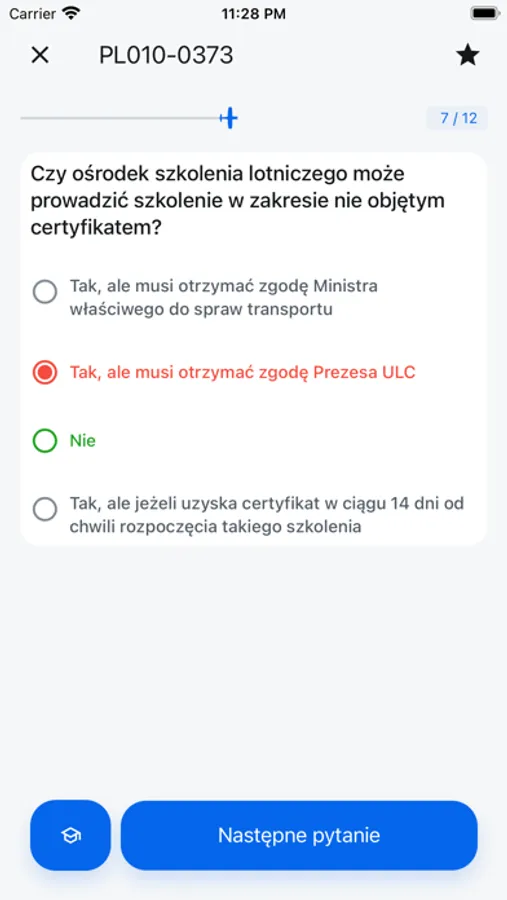 5. Odznacz trudne pytanie gwiazdką i wróć do niego w trybie "Ulubione"