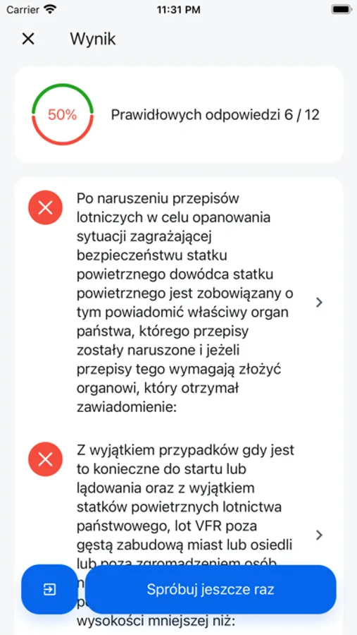 7. Powtórz pytania, na które udzieliłeś złej odpowiedzi w trybie "Praca nad błędami"