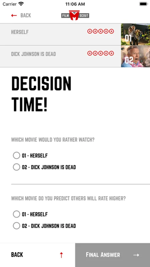 In previous years we've used Film Scout exclusively for the Sundance Film Festival. However, we're excited to announce that we've updated the app to allow for more festivals-- and more films-- to scout. Tell us what movies you’d like to see, and put your scouting skills to the test by predicting what others will think.