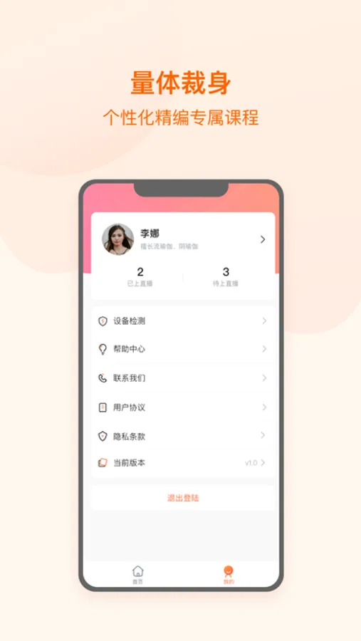 3、课程体系规范接地气,轻轻松松完成教学。"专注于用1对1在线视频的方式定制化改善学员体态,解决减脂塑形、肢体僵硬等问题的线上瑜伽教育平台。通过1对1在线直播的方式,让你足不出户体验国内外瑜伽名师课。 功能优势1、随时随地上课,多终端覆盖,真正做到足不出户就可以赚钱。2、课程安排一目了然,随时查看我的课表,让自己的每分钟都过得有价值。3、课程体系规范接地气,轻轻松松完成教学。"