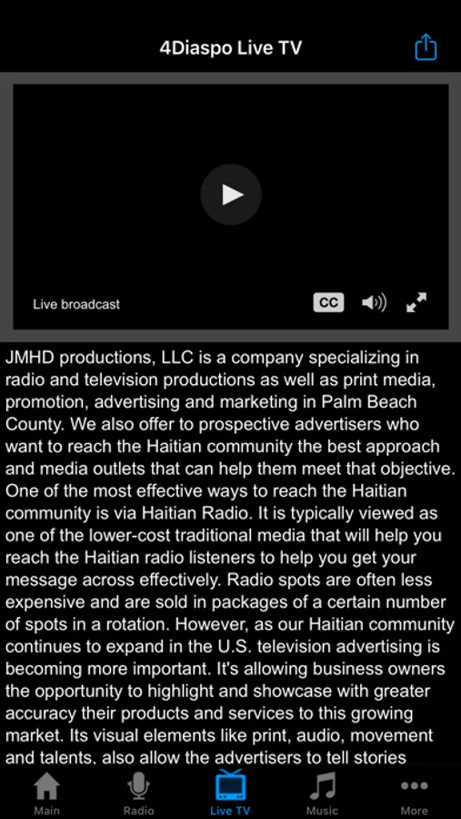 JMHD productions, LLC is a company specializing in radio and television productions as well as print media, promotion, advertising and marketing in Palm Beach County. We also offer to prospective advertisers who want to reach the Haitian community the best approach and media outlets that can help them meet that objective. One of the most effective ways to reach the Haitian community is via Haitian Radio. It is typically viewed as one of the lower-cost traditional media that will help you reach the Haitian radio listeners to help you get your message across effectively. Radio spots are often less expensive and are sold in packages of a certain number of spots in a rotation. However, as our Haitian community continues to expand in the U.S. television advertising is becoming more important. It's allowing business owners the opportunity to highlight and showcase with greater accuracy their products and services to this growing market. Its visual elements like print, audio, movement and talents, also allow the advertisers to tell stories within their ads that will have a greater impact on the audience. This level of creativity can give greater meaning to a brand beyond its basic product. Keep in mind that the main media outlets that we are associated with are WPBR Radio Nouvelle Lumiere 4 DiaspoTv in Palm Beach,and Radio Haiti Tropical in Orlando. Should you have any questions, contact us immediately via our contact number or email.