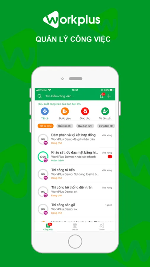 Tạo việc nhanh chóng, kết nối giản đơn, chia sẻ dễ dàng, thông báo liên tục sẽ giúp bạn luôn hoàn thành mọi công việc. Workplus hướng tới việc quản lý giản đơn, làm việc đơn giản chỉ là "Tương tác".