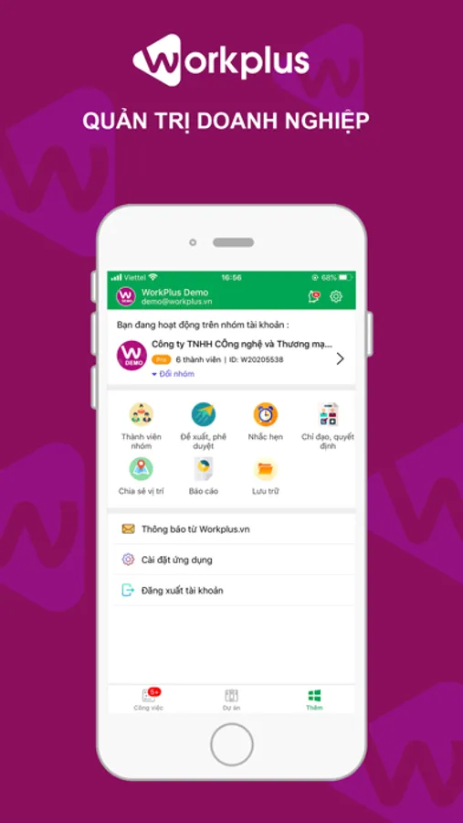 Ứng dụng quản trị và số hóa doanh nghiệp WorkPlus.