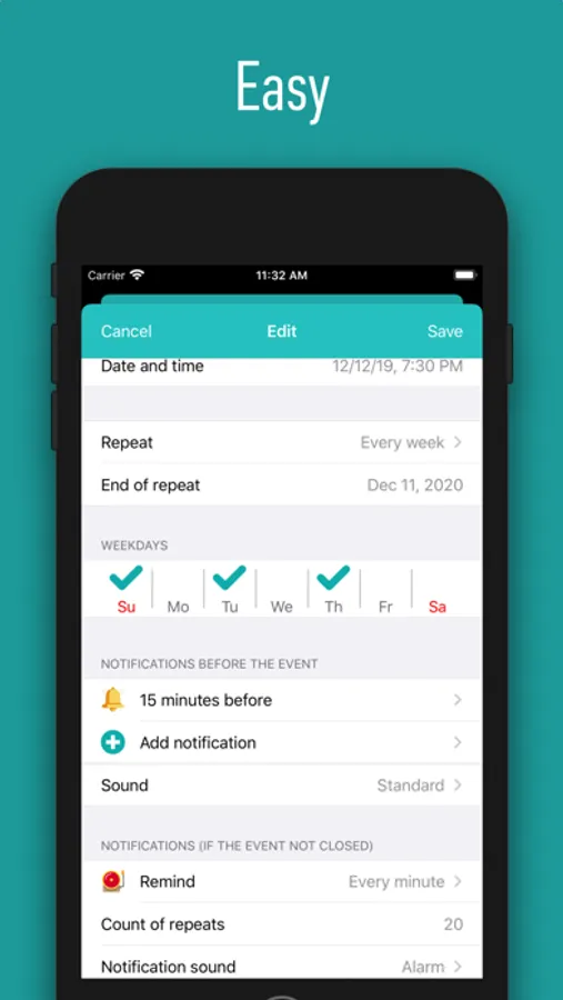+ Comfortable planning of repeated events.