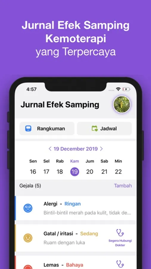 When experiencing the side-effects, Relia can help you to simply record all the side-effect, and provides a medically-reliable indicator of how severe is the side-effects.