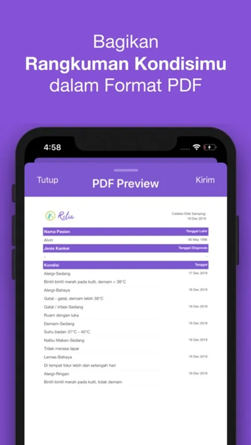 Imagine an app that helps to record of your chemotherapy side-effects in one place. Introducing, Relia.