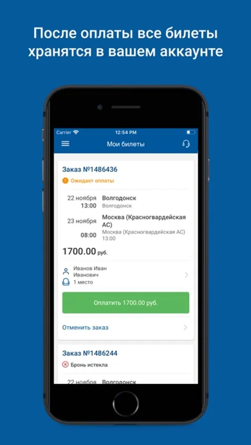 - бронирование автобусных билетов до момента оплаты