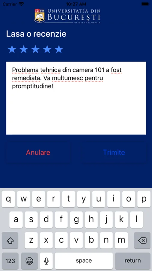 Venim în ajutorul unei comunicări cât mai facile între studenți și staff-ul campusurilor universitare. În momentul ȋn care aveți o problemă, aveți la dispoziție aplicația „Campus Connect” care ȋnregistrează orice sesizare sau sugestie. Aceastea vor fi automat transformate în tichete, respectiv sarcini, care vor fi atribuite unor persoane competente pe domeniul respectiv. Pot fi anexate și documente care vor fi stocate ȋn cadrul aplicației și care ar putea ajuta la soluționarea sarcinii – de exemplu fotografii. Veți primi notificări privind înregistrarea și soluționarea problemei semnalate. Mai mult, veți putea da un rating privind modul de soluționare, inclusiv să descrieți ratingul dat.