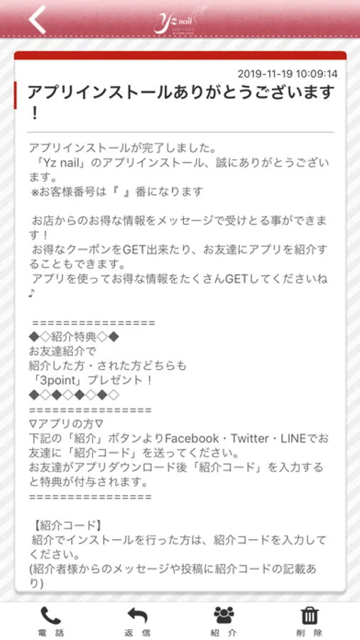 Yz nailのアプリをSNSを通じてお友達に紹介する事ができます。