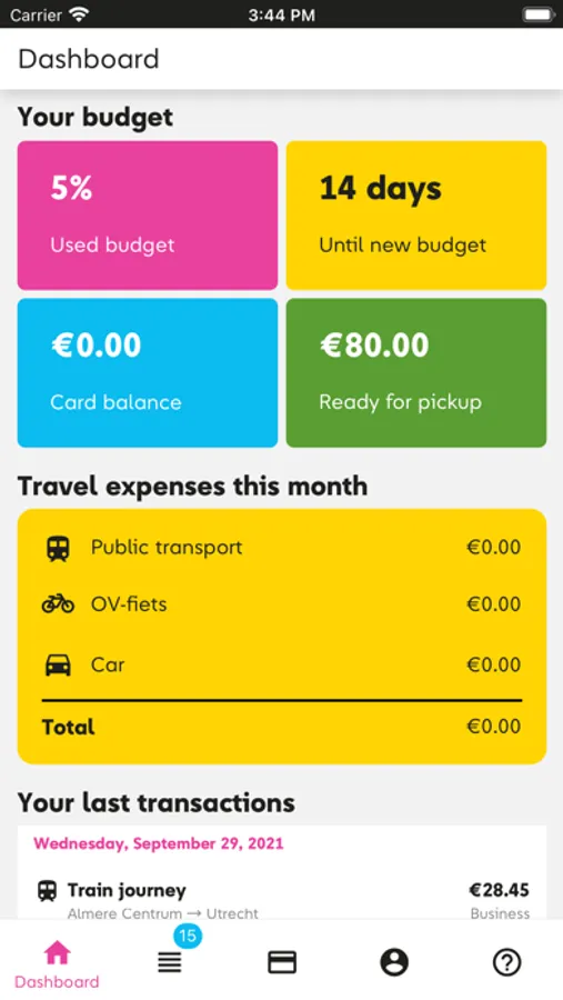 Het dashboard geeft je inzicht in jouw reiskosten. Heb je een OV Budgetkaart dan tonen we ook alle nodige informatie omtrent jouw budget.