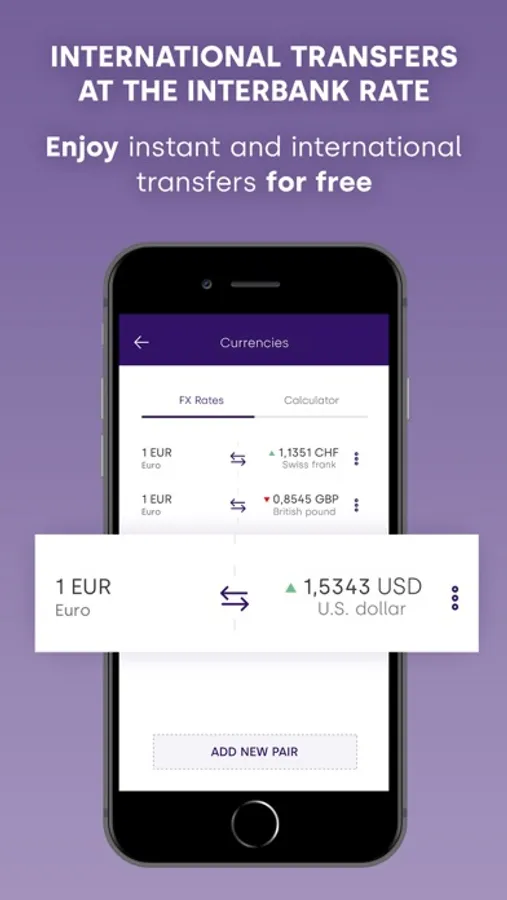 Enjoy multi-currency cash and savings accounts with international and local transfers. Your deposits are protected up to €100,000.