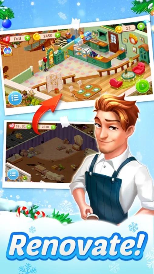 Design new decor & furniture by matching fruit, power-up with levels and renovate your entire foodie town.
