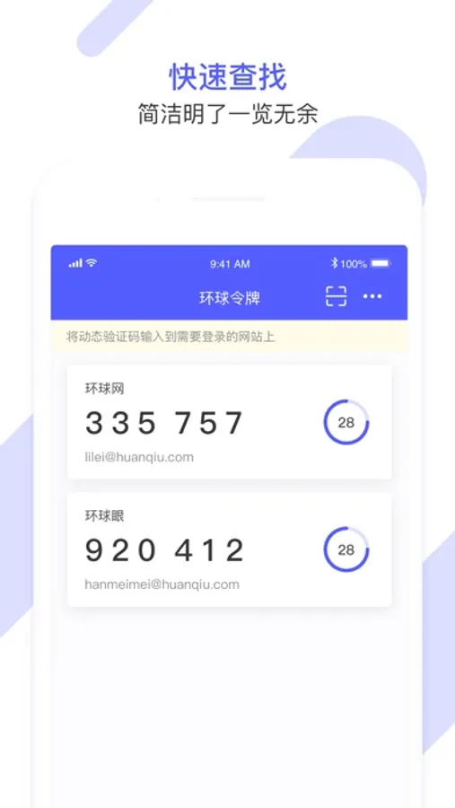 在使用它之前,您首先需要在相关应用上开启二次验证,然后通过扫码或者手动输入的方式完成「环球令牌」与该应用的绑定。之后您就可以顺畅的通过验证码验证登录啦。