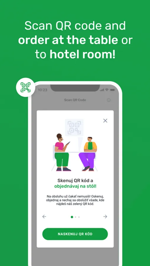 Look for our unique, green QR codes on the tables in restaurants, on the terraces or even in the hotel rooms! Then just use Eatster app to scan the QR code, choose from the menu and the waiters will cater everything to your place.