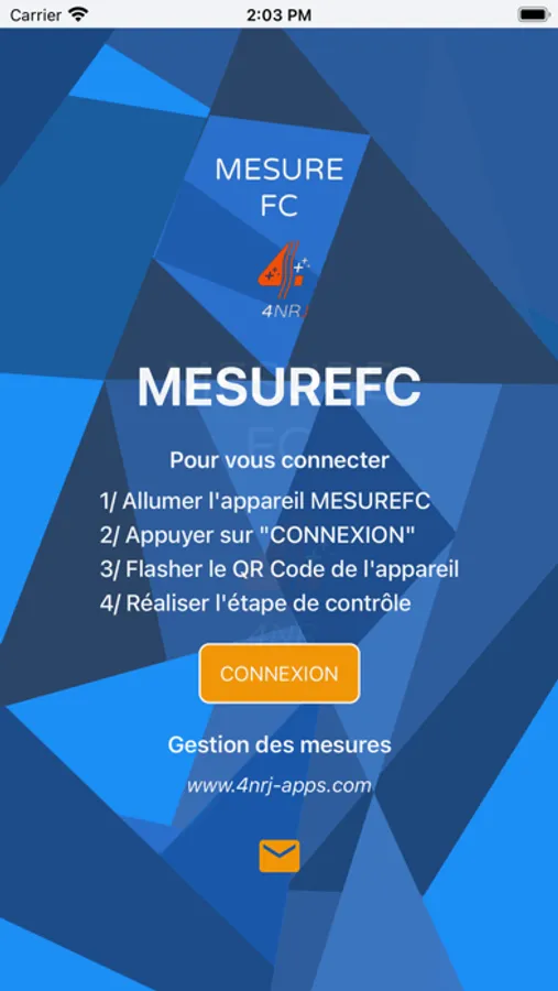 • Récupération et enregistrement des données sur smartphone via l’application mobile MESUREFC.