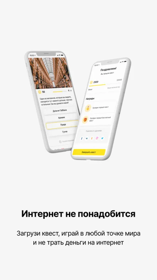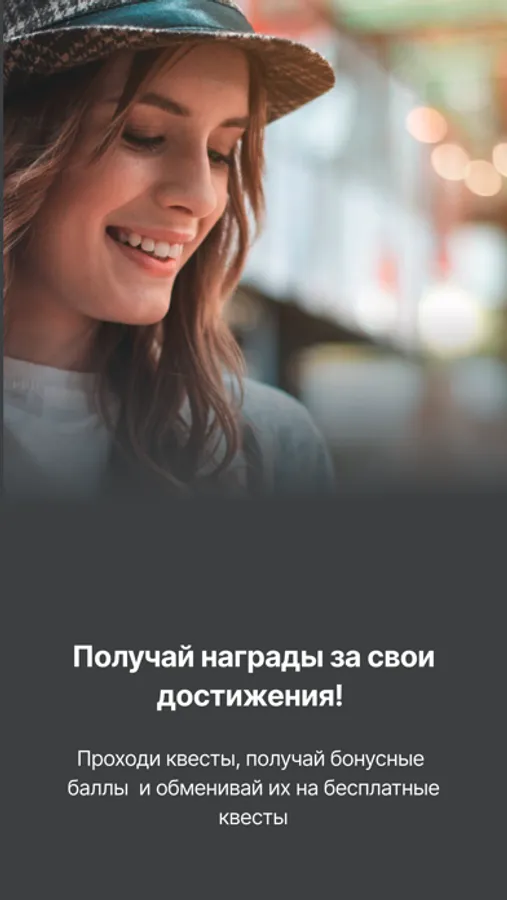 Скачай приложение бесплатно и зарегистрируйся, чтобы накапливать баллы за пройденные квесты: 5000 баллов – любой квест в подарок!