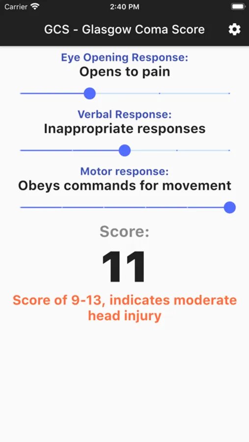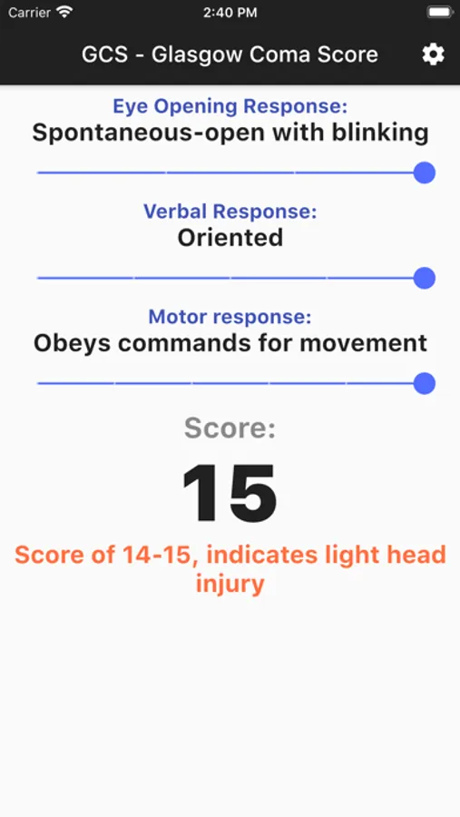 GCS Glasgow Coma Score is a simple and beautiful app to evaluate a patient/persons consciousness in our out of an emergency setting. GCS is a widely used tool to evaluate a persons head injury, where it composes of three tests: eye, verbal, and motor response.
