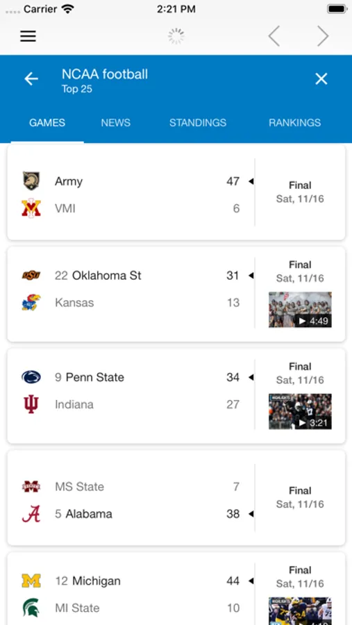 college football scores