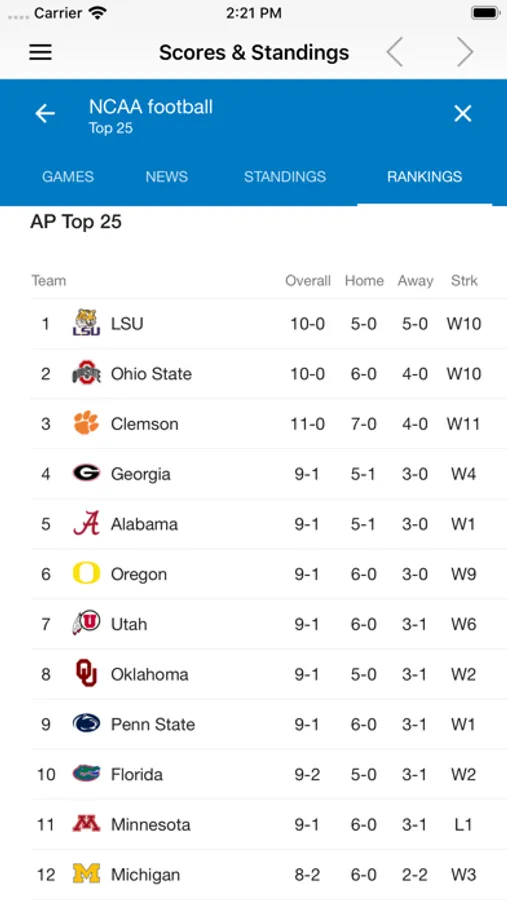 college football rankings