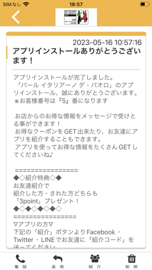 PAOLOのアプリをSNSを通じてお友達に紹介する事ができます。