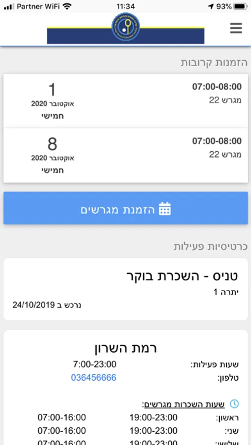 עם האפליקציה ניתן להזמין מגרשים במרכז המבוקש ולשלם על ההזמנה.