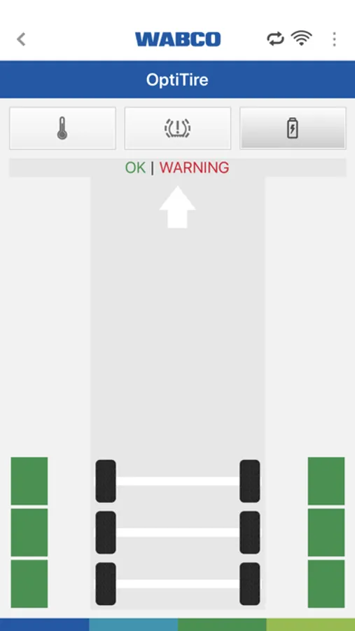 Tire pressure - Using the App, drivers and maintenance staff can monitor tire pressure and tire temperature. The battery status of the sensors is also observable and the system will warn users if any parameter moves outside of defined target ranges.