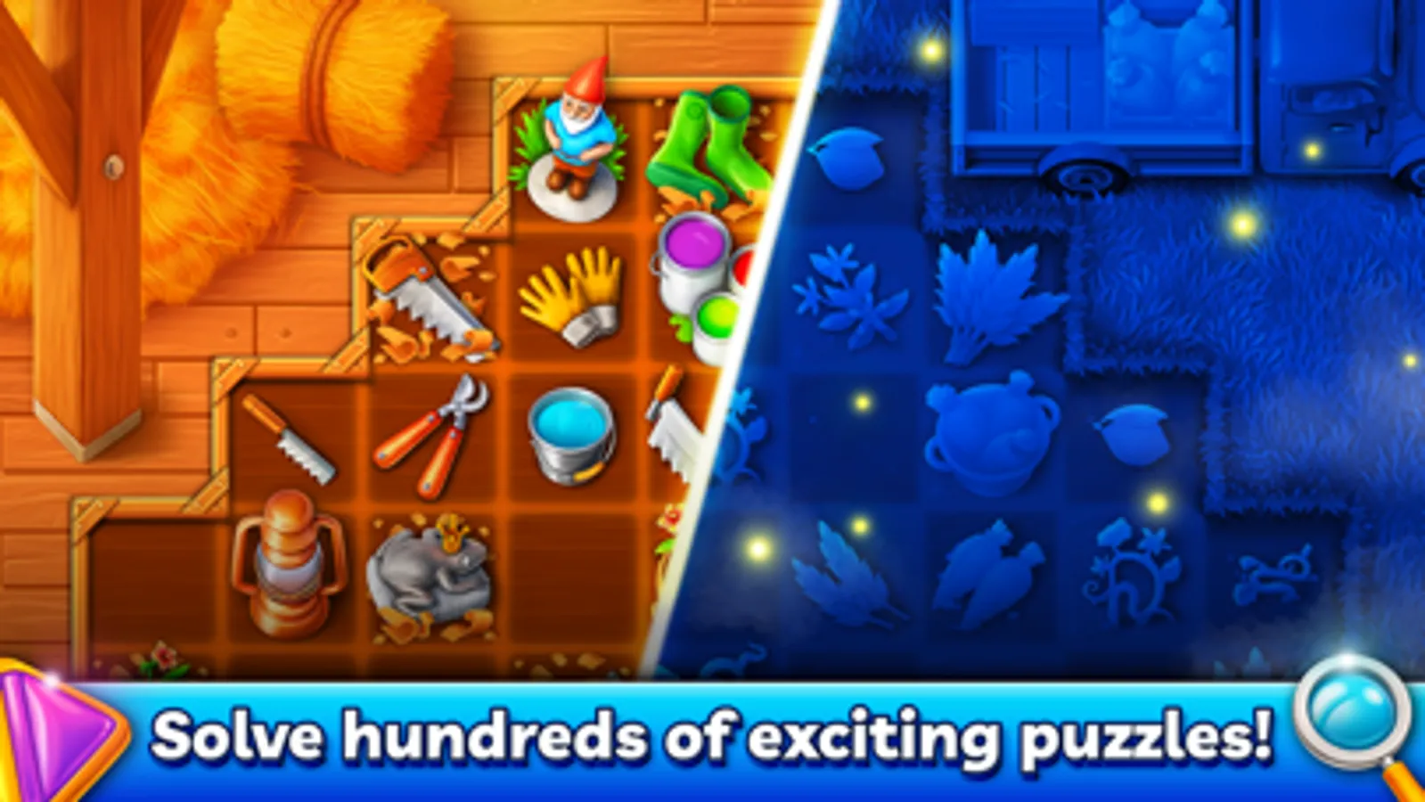 You have just moved into your new cozy home - Merge Fields farm. Each field on your farm hides a variety of crops that need to be merged. Can you find and sort them ready for delivery?