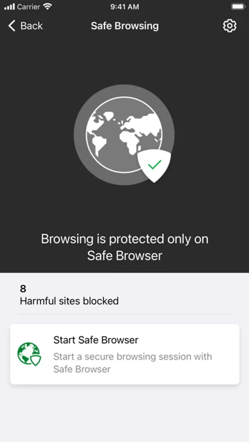 Browsing protection keeps you safe on the Internet, when you surf the web with the app's own browser.