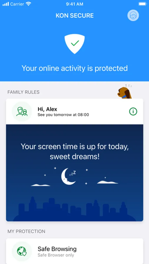 KON SECURE responds to the protection needs of your entire family. It contains all you need to protect your children online; browsing protection, content filter, safe search, browsing time limits, and the remote locate and alarm.