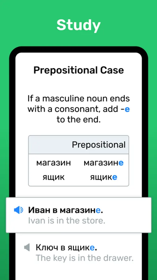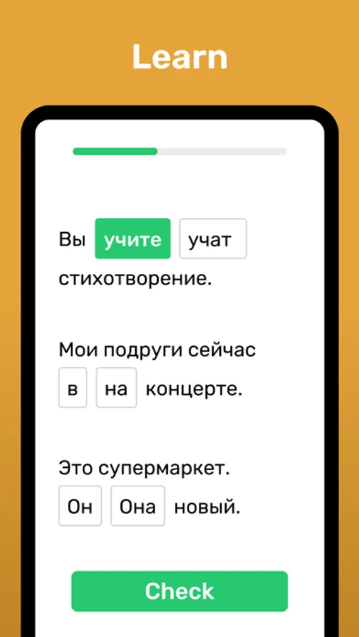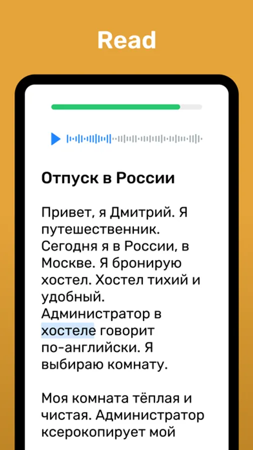 A learning process designed for you that is both easy and guided: You’ll feel like you’re learning more and more Russian every day. Every sentence, exercise, review, and reading has been carefully selected for you.