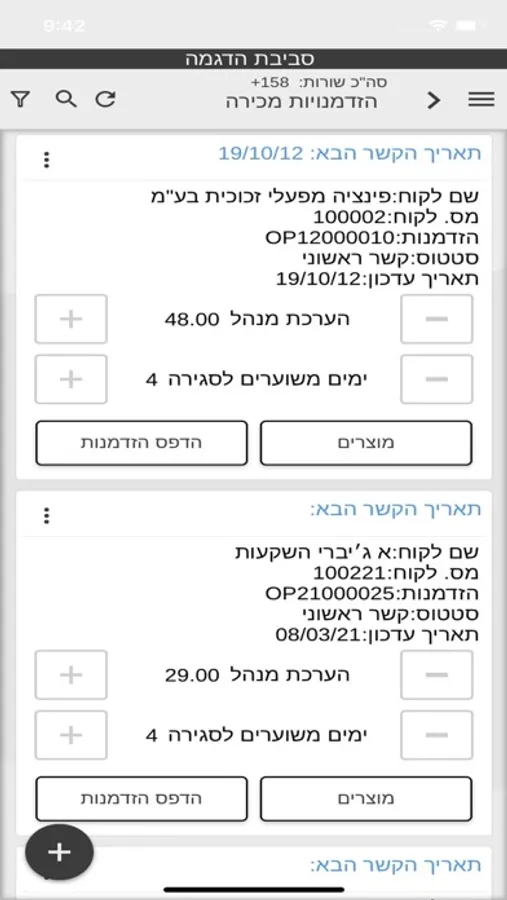 * שימוש באפליקציה ע"י: עובדי חברה, לקוחות וספקים.