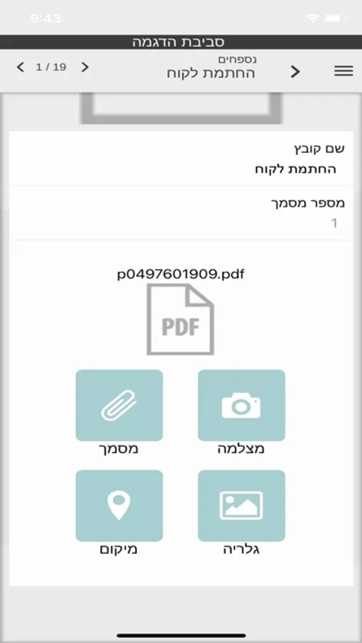 * צירוף נספחים לתעודה כגון: תמונה מהמצלמה מיקום נוכחי ומסמכים.