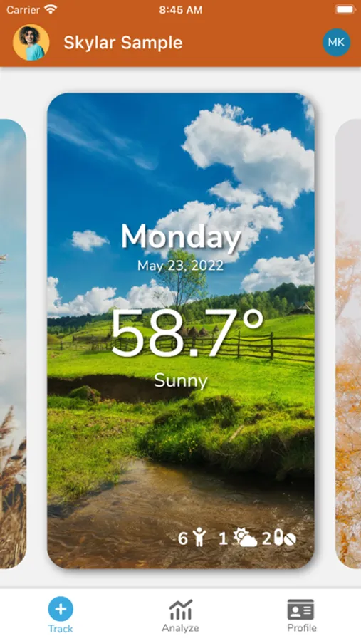 * Weather (automatically tracked based on location)