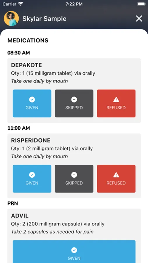 * MAR (Medication Administration Record) tracking, including narcotics counting