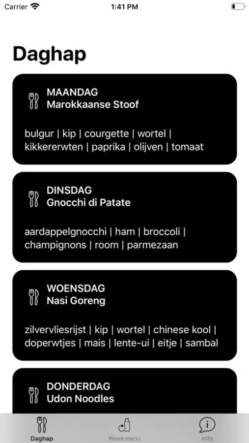Laifood biedt een wisselend weekmenu aan, bestaande uit smoothies, maaltijdsalades, koolhydraatarme maaltijden en daghappen. Bekijk in de app waar het menu deze week uit bestaat en ontvang een notificatie wanneer het weekmenu wordt aangepast.