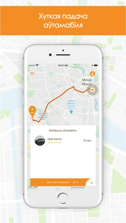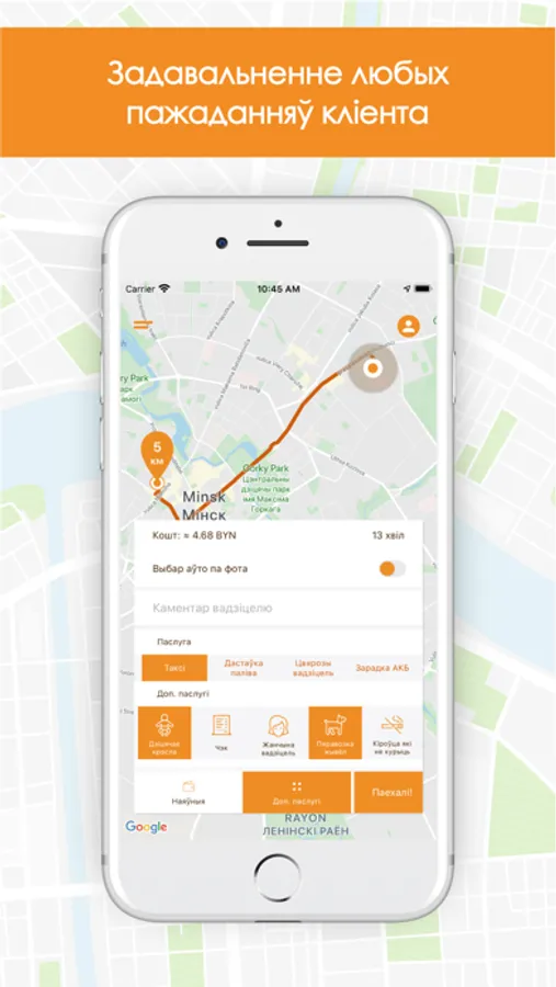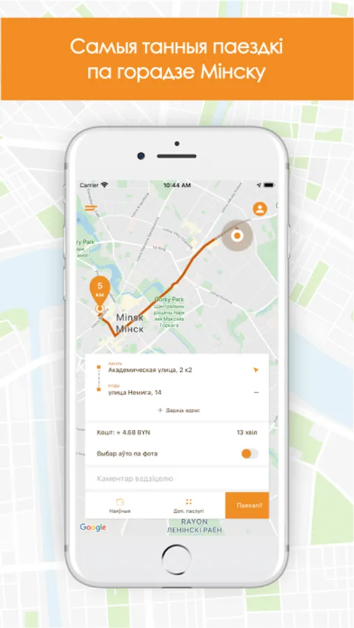 Заказ такси в Минске еще никогда не был настолько простым, ведь теперь это можно сделать всего в несколько кликов, указав начальный и конечный пункты. Если вам удобнее выбрать направление по ходу поездки, то просто оставьте конечный адрес пустым.