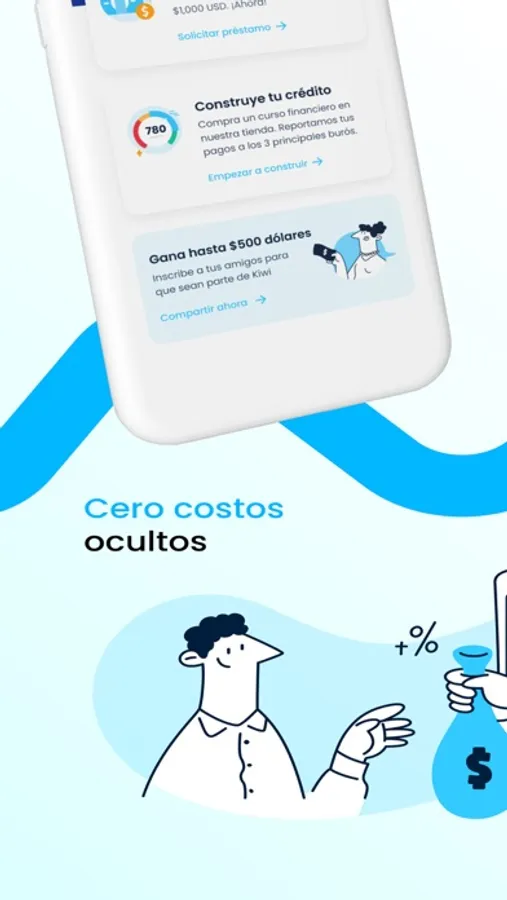 En esta aplicación, los usuarios pueden gestionar sus cuentas de Kiwi, donde pueden acceder a efectivo, construir un historial de crédito y mejorar su salud financiera a través de contenido educativo.