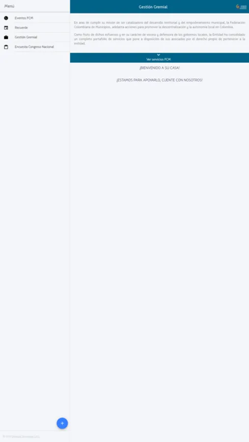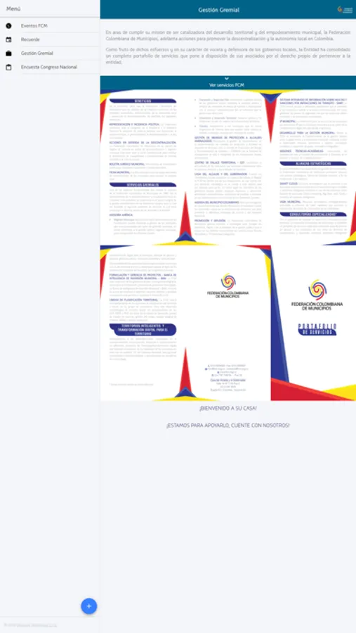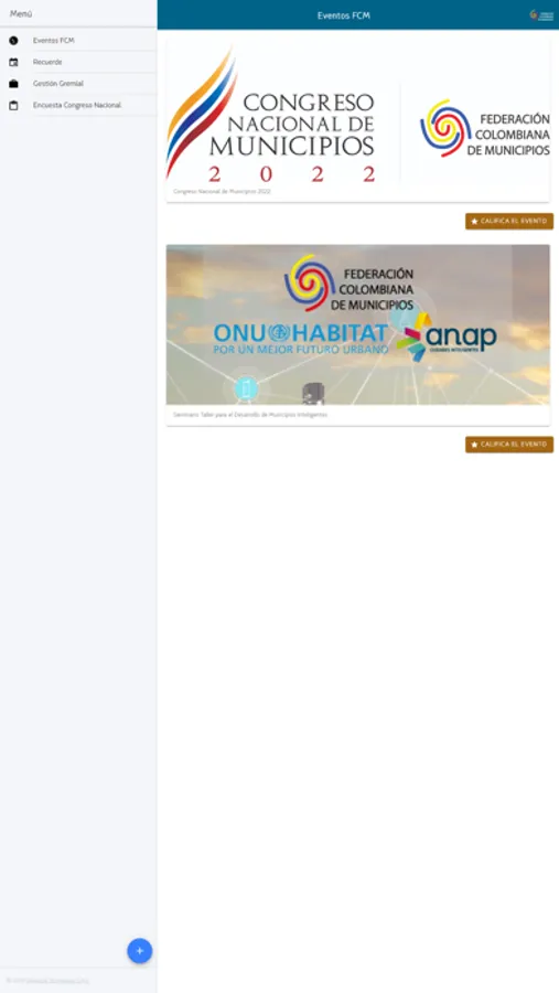 Esta aplicación permite la visualización de todos los eventos de la Federación Colombina de Municipios