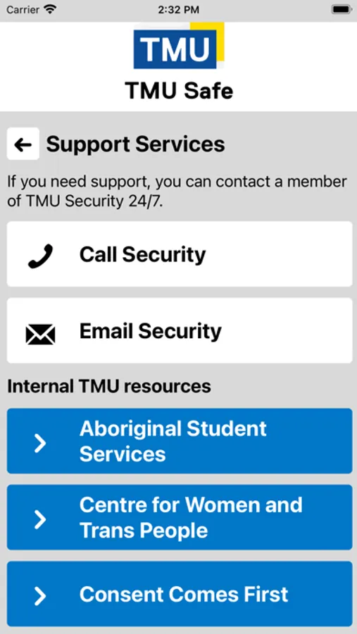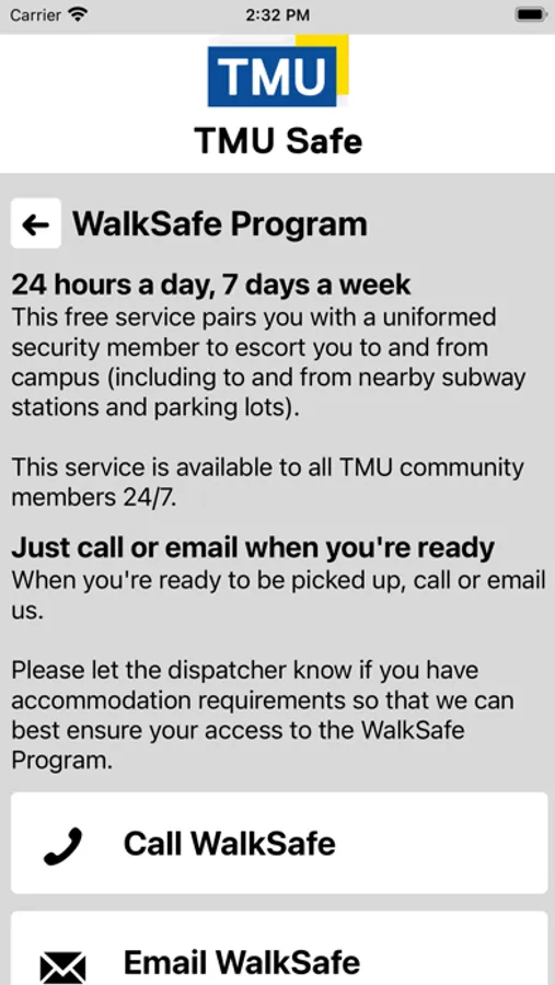 TMU Safe is the official safety app for Toronto Metropolitan University.