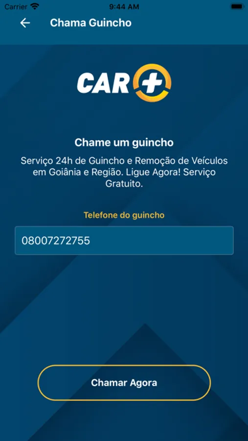 • Contato direto com serviço de Guincho 24horas