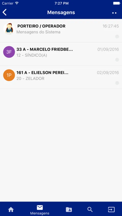 - Mensagens do sindico, zelador e porteiro.
