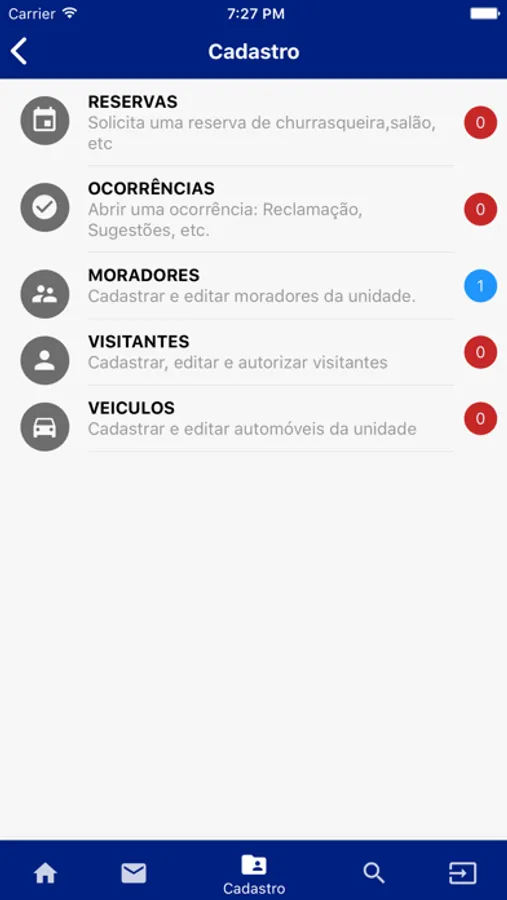 - Reservas de áreas comuns (Churrasqueira, Salão de festa, etc (Se tiver habilitado para o seu condomínio)