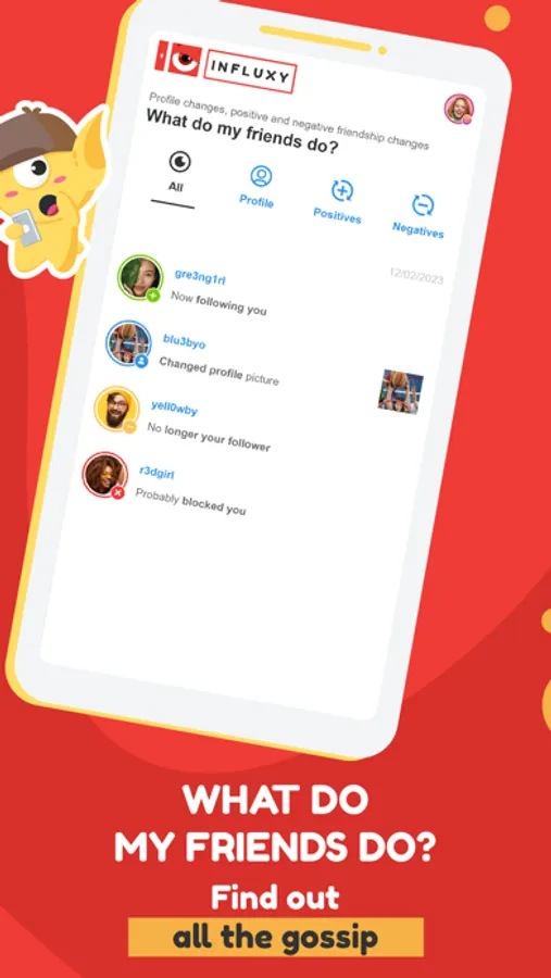 • Find out if something changes in your list of followed or followers: you will not miss anything!