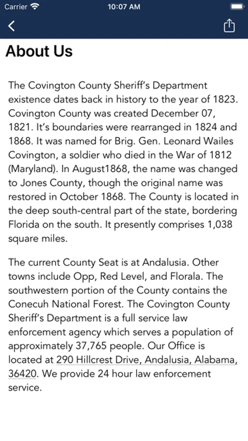 The Covington County Sheriff’s Office mobile application is an interactive app developed to help improve communication with area residents. The Covington County Sheriff App allows residents to connect with the Covington County Sheriff’s Office by reporting crimes, submitting tips, and other interactive features, as well as providing the community the latest public safety news and information.